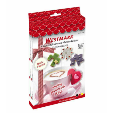 Westmark 31962260 Csészére akasztható sütemény kiszúró szettAnyaga: rozsdamentes acél4 darab/csomagMosogatógépben moshatóMéretek: 10 x 18 x 2,5 cm