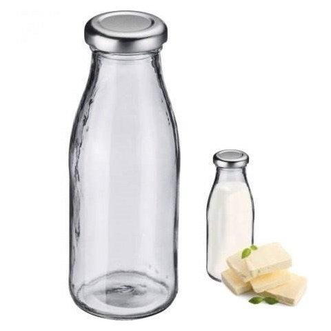 Tejesüveg - űrtartalma 250 ml, kerek, csavaros fém kupak, mérete 16 × 6 cm (magasság × átmérő) A német Westmark márkájú turmixok, tej vagy gyümölcslé üvegnek praktikus menetes fedele van . A tiszta Westmark üvegből készült gömbölyű palackból származó ital jobban ízlik, mint egy műanyag
