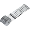 Westmark rozsdamentes acél tésztavágó, 5 kerékkel. A csíkok szélessége rugalmasan állítható 12–122 mm között. A kerekek átmérője kb. 53 mm. Hossza 245 mm, szélessége 56 mm. Alkalmas cukrászok számára.
