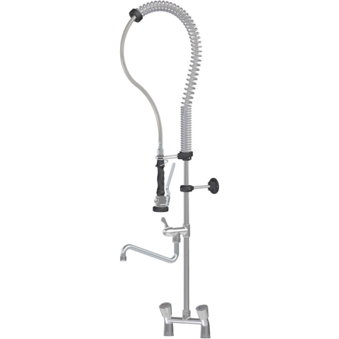 with prewash set half tube spout ? 18 x 250 mm distance between holes 155 mm fittings ? 1/2 F x 400 mm flow rate 20 l/min a 3 bar mounting hole 22 mm