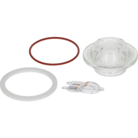 complete with: 2 neutral halogen lamps G9 25W 230V 2 O-Rings ? 50x46x2 mm 2 PTFE gaskets ? 53x45x3 mm glass ? 53 mm- glass thread ? 33 mm for Convection oven (UNOX) - Series BAKERLUX Series CHEFLUX