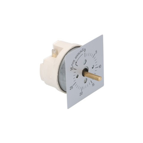 szitanyomott lemezzel együtt | mechanikus időzítő hangjelzéssel | mechanikus mozgás egyensúlykerékkel | kézi baloldali pozicionálás lehetséges | 30 perces kézi beállítású ciklus | bipoláris, 16(3)A 250V érintkezőkapacitással | max hőmérséklet 125°C | D al
