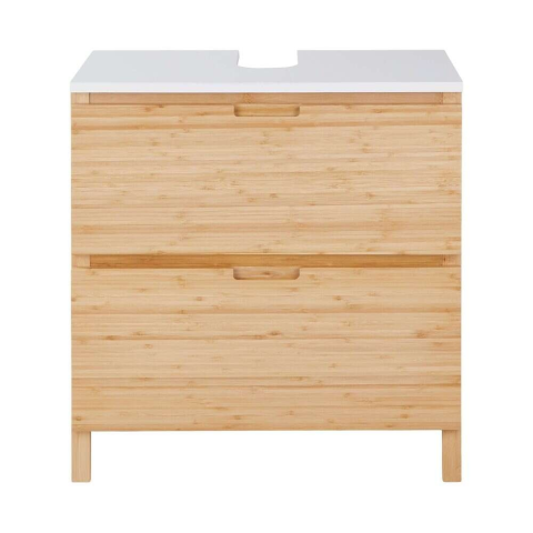 WHITE SANDS Fürdőszobabútor Tárolóval - Bambusz és Fehér Dizájn ✨ Ez a stílusos és praktikus fürdőszobabútor tökéletes választás, ha tárolóhelyre és elegáns megjelenésre vágysz. A fehér és bambusz kombinációja modern és otthonos hangulatot teremt a f...