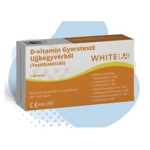 D-vitamin gyorsteszt vérmintából - WhiteLAB 1 db D-vitamin gyorsteszt vérmintából - WhiteLAB 1 db A D-vitaminok csoportjában a legfontosabb vegyületek a D3-vitamin és a D2-vitamin. A D-vitamin a májba kerül, ahol 25-hidroxi-D-vitaminná metabolizálódik