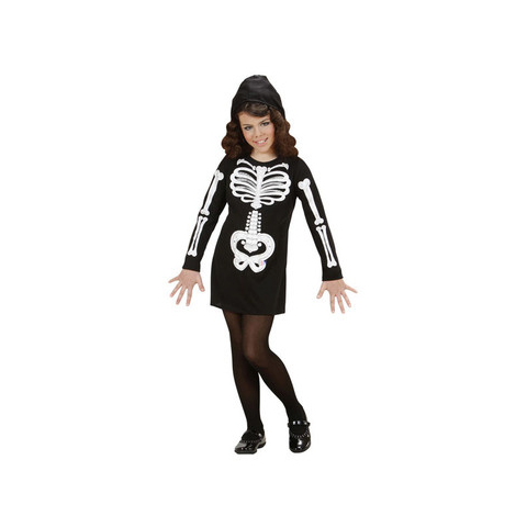 Csillámokkal díszített, fekete-fehér csontváz jelmez lányoknak. Minőségi, részletgazdag kidolgozású, licences kezeslábas jelmez farsangra, Halloweenre. A jelmez mérete: 128 cm A méretbeli eltérések miatt érdemes eggyel nagyobb méretű jelmezt választani.