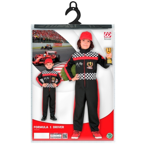 Sok kisfiú szeretne autóversenyző lenni, egy olyan pilóta, aki nem retten meg a kihívástól. A száguldás és az autózás szerelmesei most igazi Forma-1-es pilótának öltözhetnek a farsangon vagy Halloweenkor. A praktikus kezeslábas cipzárral záródik és kockás zászlóval, kupával van díszítve. Mérete: 128 cmCsomagolás mérete: 30 x 5 x 40 cm