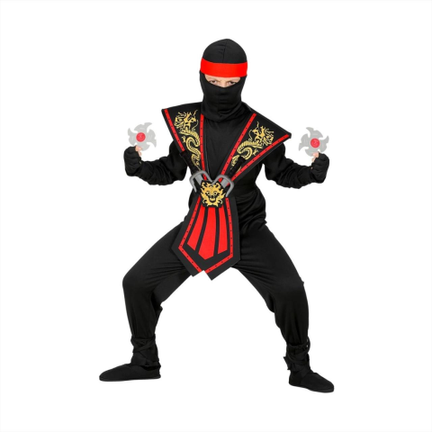 A jelmez tartalma: overáll, mellvért, öv, lábkötő, kézkötő, maszk, fejpánt, kesztyű, 2db ninja tőr, 2 db dobócsillag.