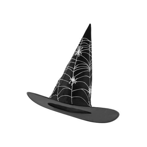 Fekete, fehér színű pókháló mintás boszorkány kalap. Anyaga: Poliészter Mérete: 60 x 45 cm