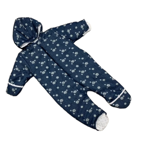 Tavassszal, ősszel elengedhetetlen ruházat az átmeneti overall. Vastag farmer hatású anyagból készült, pamut béléssel, kapucnival, kéz-, és lábvédővel, a baba fejének, kezecskéjének és lábacskájának melegen tartásához. Végig czippzáras, a nyakrésznél védő