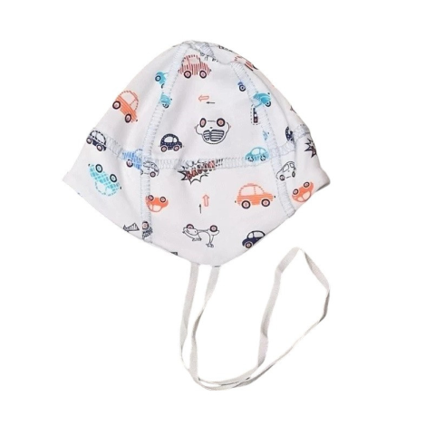 Anyaga prémium minőségű 100% pamut, 40 cm fejkörméretre ajánljuk. Pamut kötővel, fülvédővel. Összetétel: 100% pamut 40 fokon mosható