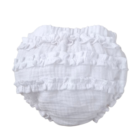 A Wikids duplagéz fodros pelenka bugyi egy igazán bájos és praktikus darab a legkisebbek nyári ruhatárába. Két rétegű, légáteresztő duplagéz anyagból készült, ami tökéletes választás meleg időben is, hiszen könnyed viseletet biztosít a babáknak. A 100% pa