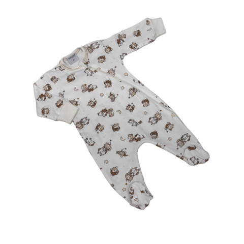 1 kép Wikids Hosszú ujjú cipzáros pamut rugi - Fehér/Bézs Bárányos Macis 62