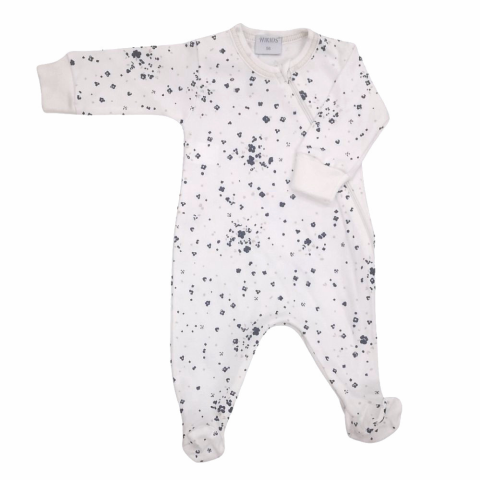 1 kép Wikids Hosszú ujjú cipzáros pamut rugi - Fehér/Fekete Apró Virágos - 56