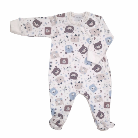 1 kép Wikids Hosszú ujjú cipzáros pamut rugi - Fehér/Kék/Barna Maci Fejes 68