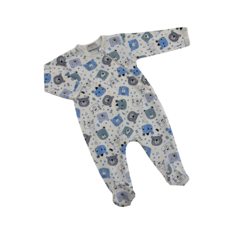 1 kép Wikids Hosszú ujjú cipzáros pamut rugi - Fehér/Kék Macis - 62