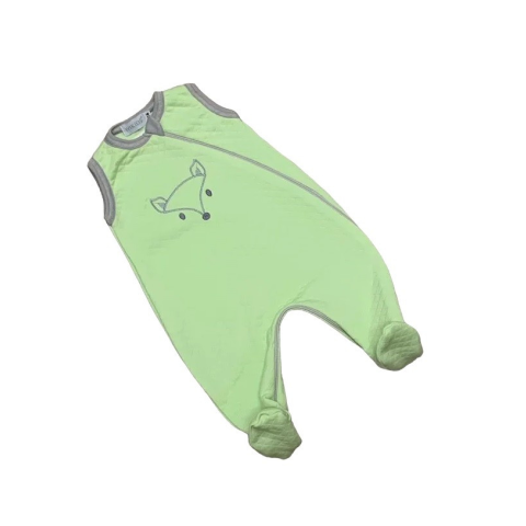 1 kép Wikids Ujjatlan Steppelt Pamut Rugdalózó - Zöld/Szürke Róka Hímzéssel - 62