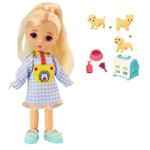 Sada bábiky a psíka. Veľkosť bábiky 12,5 cm. Pohyblivé kĺby