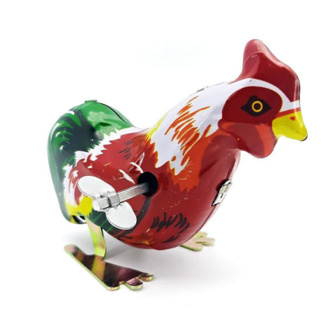 Retro játék, ugráló kakas, ami egy kulccsal felhúzható.