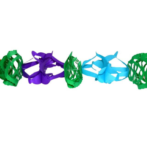 Füzér színes 4m Ez egy nagyszerű dekoráció a kerti partik, gyermekszobák vagy bármilyen más alkalomra. Papír füzér4 m hosszú, motívumokkal.