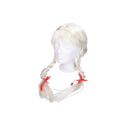 A fehér paróka remek kiegészítő egy karneváli jelmezhez vagy egy szórakoztató partihoz. A paróka haja két hosszú copfban van összefonva.