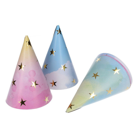 Minden ünnepnek megfelelő hangulatot adnak. A papírkalapok egy rugalmas szalagra vannak rögzítve, így biztonságosan tartanak a fejen.