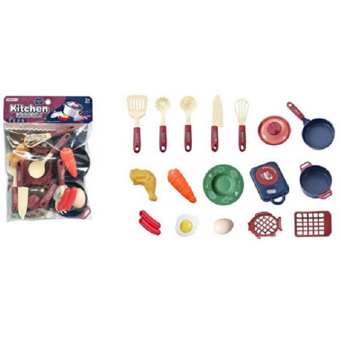 A konyhai edénykészlet minőségi műanyagból készült.A fiatal szakács készlete: tűzhely, fedős serpenyő, evőeszközök, merőkanál, tányérok, fazék stb.