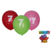 Színes lufik 7 es számmal a születésnapi partik díszítésére.