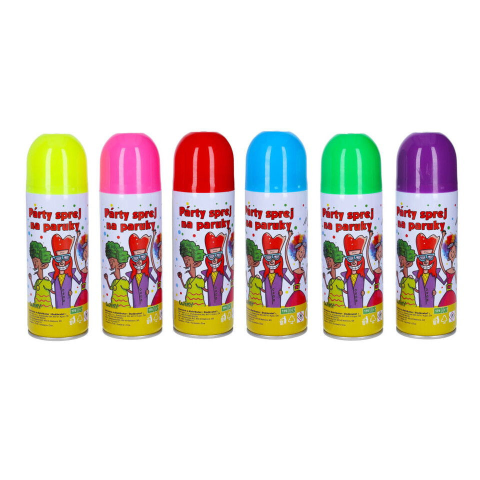 Party spray parókák színezéséhez. A spray normál samponnal mosható. Használat előtt szobahőmérsékletűnek kell lennie. Nem hajfelhordásra készü