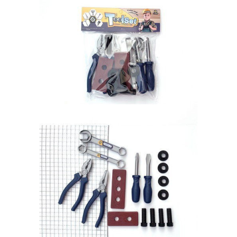 A kis barkácsolónak szánt eszközkészlet fejleszti a gyermek kreativitását és elsajátítja az alapvető műhelyeszközöket. A készlet tartalma: fogó, kombinált szerszámok, csavarhúzó, franciakulcs, csavarkészlet, kis lemezek a csavarokhoz.
