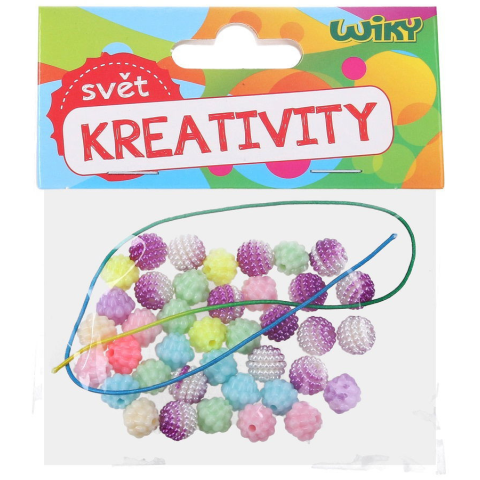 Színes gyöngy készlet felfűzéshez. A csomag tartalmaz egy zsinórt is a felfűzéshez.