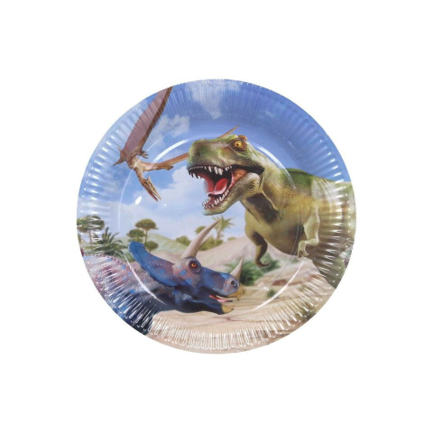 Párty taniere s motívom Dinosaura na detskú oslavu. Balenie obsahuje 6 ks tanierov, veľkosti 23 cm.