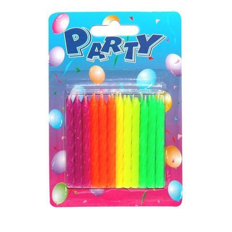 A neon színekben kapható gyertyák kiválóan alkalmasak a gyerekek szülinapi tortájának díszítésére. 24 gyertya található egy csomagban 4 színben. A tartókat nem tartalmazza.