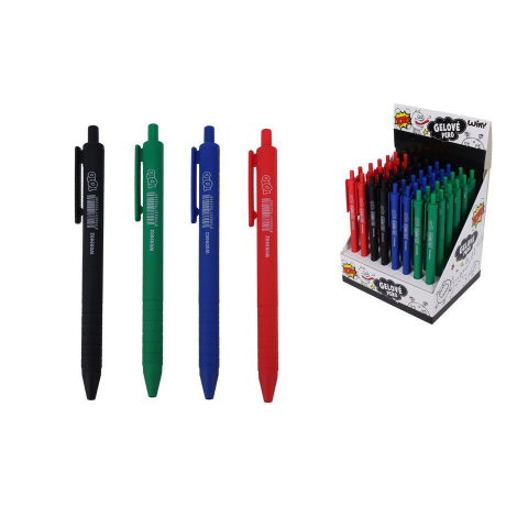 Gél toll kék heggyel és szabványos kompressziós mechanizmussal.