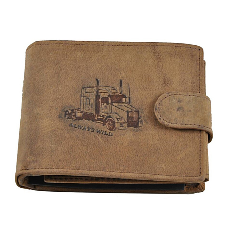 Wild márkájú, vadász stílusú marhabőr pénztárca, kamion motívummal. Speciális eljárással koptatott zsíros natur barna bőre az idő múlásával patinásodik, sötétedik, az ...