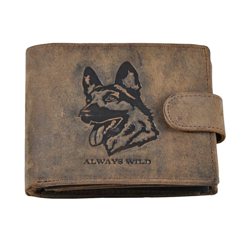 Wild márkájú, vadász stílusú marhabőr pénztárca, kutyás motívummal. Speciális eljárással koptatott zsíros natur barna bőre az idő múlásával patinásodik, sötétedik, az ...