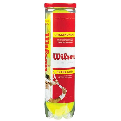 Teniszlabda - rekreációs és edzéshez, ITF által jóváhagyott, kemény felületekhez alkalmas, anyaga: gumi és filc, kiszerelés: cső, darabszám a csomagban: 4 db A Wilson Championship Extra Duty 4Tball teniszlabda szabadidős teniszezők számára ideális. Túlnyomásos labda, amely az exkluzív Dura-Weave-nek köszönhetően hosszabb élettartamot biztosít. A labd