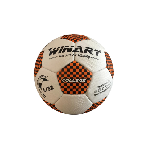 Focilabda, futball labda, műbőr 5-ös, WINART COLLEGE, narancs-fekete Termékjellemzők Mérete: 5-ös Súlya: 420–445 g Körméret: 68–70 cm Anyaga: Habosított polyuretán és PVC keverék Alábélelés: 4 rétegű, keresztbe ragasztott textil Panel kialakítás: 32 dara