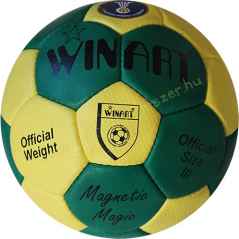 Termékjellemzők: • Típus: Kézilabda• Márka: WINART• Modell: Magnetic Magic• Szín: Zöld/Sárga• Méret: 3 (58–60 cm)• Súly: 440–450 g• Anyag: Japán polyurethane• Alábélelés: Habosított + 3 rétegű hálós textilszerkezet• Belső: Természetes latex, hi-tec butyl