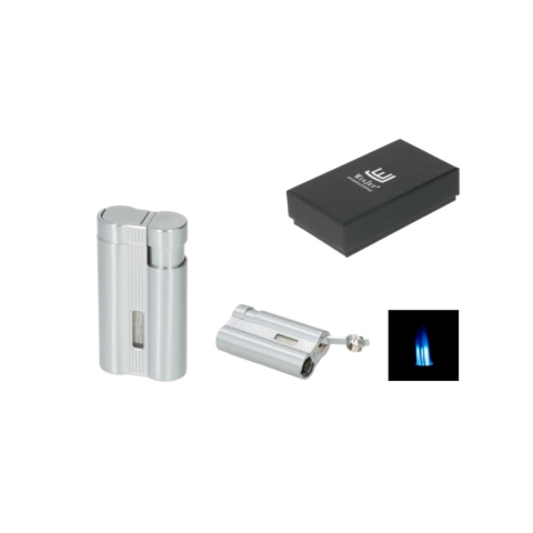 Ezüst színű WinJet szivargyújtó, 3-as jet lánggal az aljából kihajtható 10 mm-es szivarfúróval. A kihajtható szivarfúró éles pengéjének egyetlen szivar sem tud ellenállni, Az alján után tölthető öngyújtó töltő gázzal és szabályozható a láng méret, az oldalán pedig ellenőrini tudjuk a töltöttségi szintet. Ez egy szivaros számára nagyon praktikus kiegészítő mert nem szükséges egy külön szivarvágót magunkkal vinni ha például vendégségbe megyünk