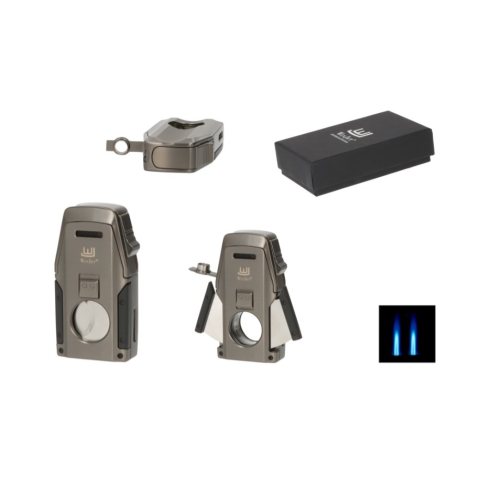 1 kép WinJet dupla szúrólángos szivar öngyújtó beépített szivarvágóval, szivarfúróval, szivartartóval - antracit