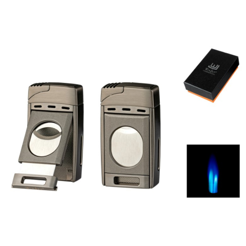 Antracit színű Winjet Premium szivaros öngyújtó erős, dupla Jet lánggal és beépített szivarvágóval. Masszív, férfias megjelenésű kiegészítő, amely tökéletes választás minden szivar kedvelő számára.Az erős, dupla szúrólángnak köszönhetően a nagyobb szivarokat is könnyedén meggyújtja, még szeles időben is. A fúvókákat zárófedél védi a szennyeződésektől, az alján pedig utántölthető öngyújtó töltő gázzal működik, ahol a láng mérete is sza
