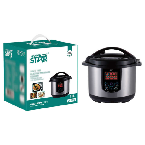 Winning Star Elektromos Kukta – 10L ST-9336A Winning Star ST-9336 egy nagy kapacitású, intelligens elektromos kukta, amely tökéletes választás nagycsaládosoknak vagy éttermek számára. A 10 literes űrtartalom lehetővé teszi nagyobb mennyiségű ételek gyors és energiatakarékos elkészítését. A készülék digitális LED kijelzős vezérlőpanellel rendelkezik, amelyen számos automatikus főzési program választható.Főbb jellemzők:Kapacitás: 10 liter – nagyobb háztart