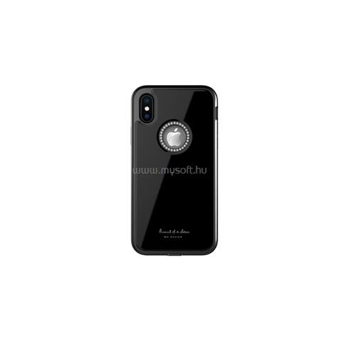 1 kép WK GINSTONE műanyag telefonvédő (ütésállóság, üveg hátlap, strasszkő, logó kivágás) FEKETE (GP-83572)