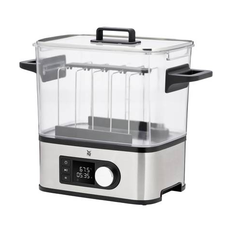 Multifunkciós főzőedény - 1500 W teljesítmény, 2in1 (sous-vide és lassú főző), halat, húst és zöldséget készíthetsz benne, Cromargan® rozsdamentes acél, 6 literes víztartály átlátszó Tritanból, pontos hőmérséklet-szabályozás és hőmérséklet pontosság, hőmérsékletbeállítás 35°C és 90°C között, keringtető szivattyú, időzítő akár 72 órára, LCD kijelző, a csomag tartalmaz kivehető hús- és zöldségtartót akár 4 sous-vide vákuumzacskóhoz, 3