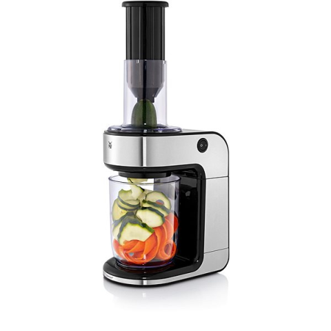 Spirálvágó - elektromos, 80 W teljesítmény, anyaga: acél, 3 cserélhető tárcsa, eltávolítható részek és csúszásgátlós felület, vágható, szeletelhető élelmiszerek: zöldség WMF 416480011 KULT X spirálvágó WMF spirálvágó 3 multifunkciós kiegészítővelA WMF 416480011 KULT X spirálvágó tökéletes segítőtárs az alacsony szénhidráttartalmú diéták során, illetve