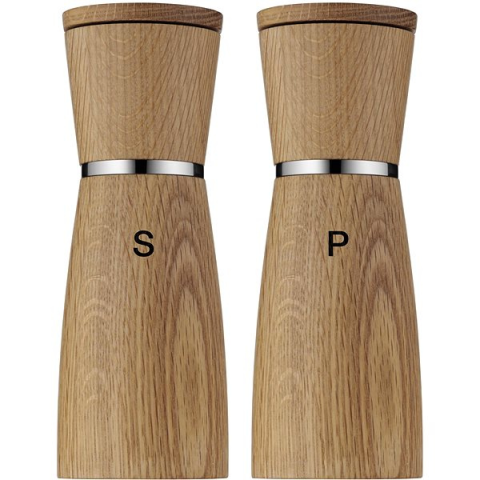 Fűszerdaráló 2 db, só és bors, kerámia őrlőszerkezet 10 év garanciával, fordított őrlés - a felső részen található őrlőszerkezet a fűszerek nem kívánt kiömlésének megakadályozása érdekében, fedővel, hogy megőrizze a friss aromát, fokozatmentesen állítható őrlési finomság, Cromargan® 18/10 rozsdamentes acélból készült, tölgyfa és kiváló minőségű műanyag, átmérője 6 cm, magasság 18 cm Select brand: BevezetőFontos információkGalériaMűszaki