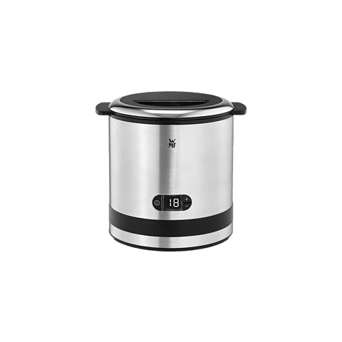 Helytakarékos fagylaltgép fagyasztott joghurt, szorbet vagy fagylalt készítéséhez. Tálaljon akár háromféle fagyasztott desszertet: pár perc alatt készítsen otthon ínycsiklandozó szorbetet, fagylaltot és fagyasztott joghurtot a WMF KITCHENminis® 3 az 1-ben kompakt fagylaltgéppel. Egyszerűen adagolja a gyümölcsöt, a pisztáciát vagy más kedvencét a 300 ml-es stílusos levehető fagyasztóedénybe. A forgó keverőlapát és az intelligens időzítő gondoskodik a többirő