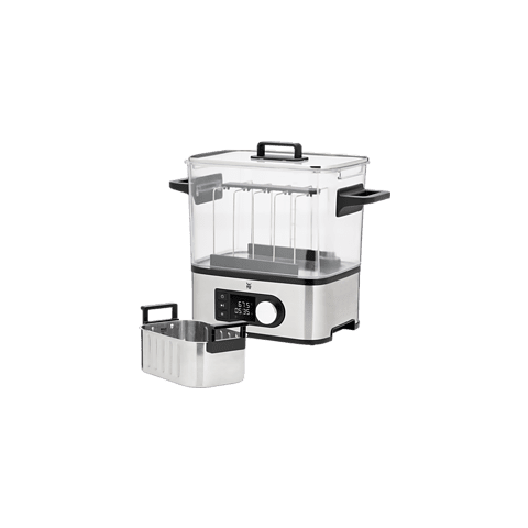 Kettő az egyben elektromos főzőedény lassú főzés funkcióval a precíz főzésért A WMF Lono Sous-Vide Pro elektromos főzőedény gourmet ételek főzésére alkalmas funkciójával lenyűgözi használóját, miközben húsok, halak és zöldségek rendkívül kíméletes elkészítésére is alkalmas. Első előny: pontos hőmérséklet-állítás sous vide főzéskor, és pontosság magas hőmérsékleten. Második előny: az edény az egyre kedveltebb lassú főzésre is alkalmas. A