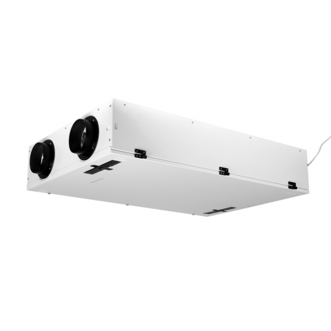 "kompakt, lapos kivitel, mennyezetre és falra is szerelhető tiszta, pollen- és utcazajtól is mentes frisslevegő könnyen kihúzható ellen-keresztáramú lemezes hővisszanyerő 95 % körüli hővisszanyerés beépített bypass automatikus fagyvédelem energiatakarékos, állandó légszállítást biztosító, EC-motoros ventilátorok CWL-F-150 beépített 375 W-os, elektromos előfűtő regiszterrel Központi lakásszellőztető berendezés mennyezeti kivitelben, P