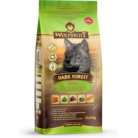 Teljes Wolfsblut Dark Forest Adult Száraz kutyatáp vadhússal és édesburgonyával 12,5 kg termékleírás